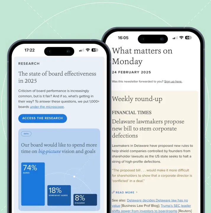 Sign up for the newsletter that digs into everything board members and governance professionals should know and start receiving: